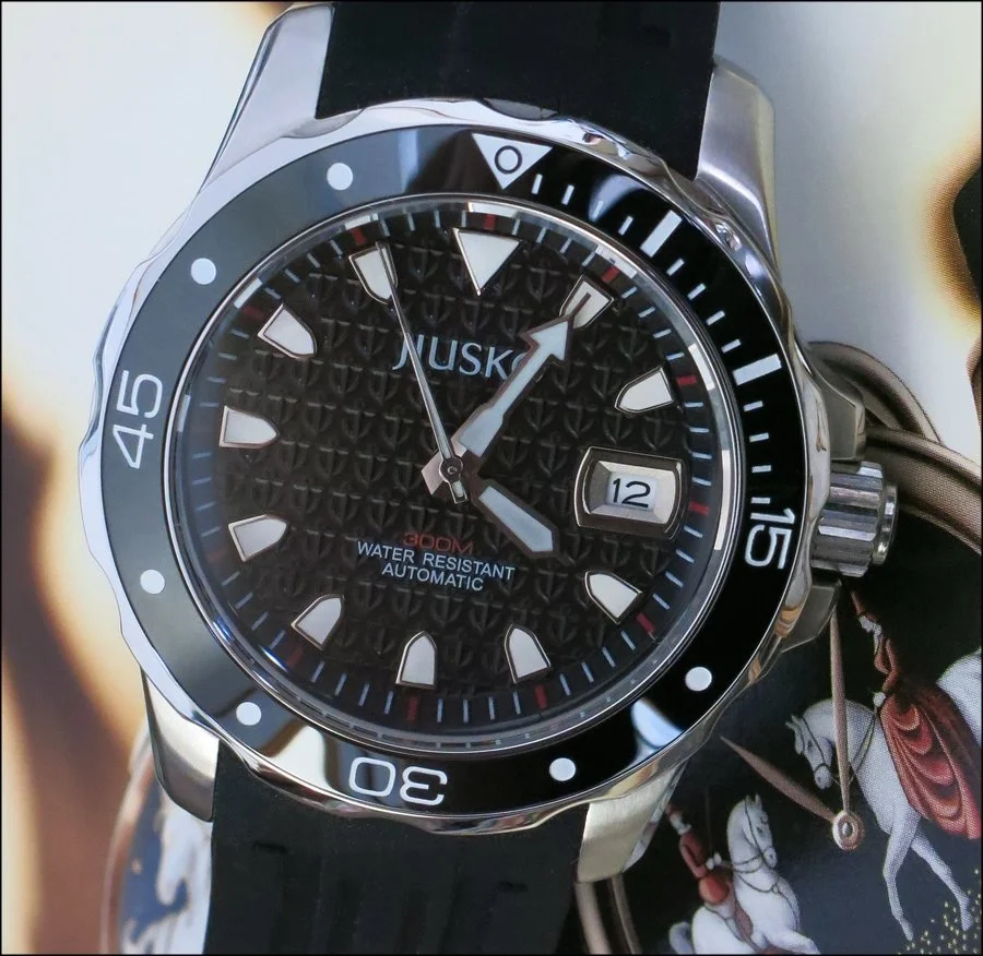 我以前有说过,我对我的[第一块积豪手表]非常满意,它是一块引人注目的休闲潜水手表,拥有卓越的色彩,由两块非常酷的材料组建,丝绸般但又强韧的不锈钢手链。8.5的盎司。我很喜欢穿它。以下为照片: