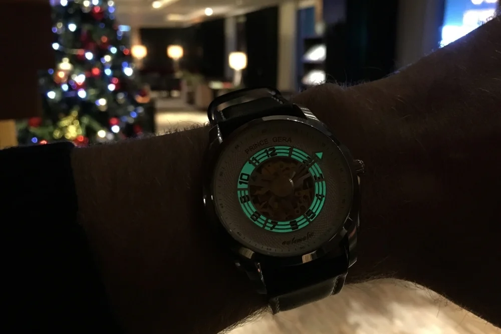 Read More在之前的评述后,又发现一块不使用传统的指针来显示时间的手表。使用旋转盘代替时间指示其实不是很新鲜,但当我第一眼看到这款[格拉王子]德国的手表我立即被它迷住了,也有点小困惑不知如何读时间,但总体对此表非常感兴趣。